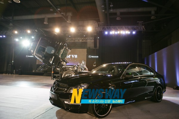 | ▲벤츠의 C63 AMG 와 벤츠 프리미엄 트럭 '악트로스' ⓒ윤경현 기자 | ||