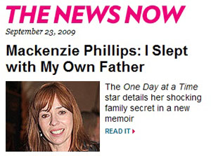 메켄지 필립스는 최근 오프라 윈프리 쇼에 출연하여 아버지와 수차례 성관계를 가졌다고 폭로한 것으로 전해졌다.