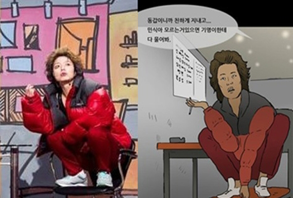 특히 이날 연재된 내용에서 김꽃두레는 의자에 쪼그리고 앉아 독특한 카리스마를 연출해 눈길을 끌었다.