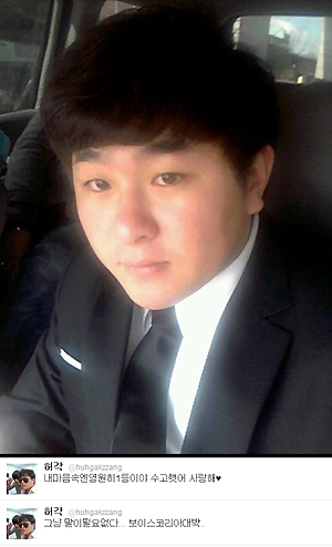 가수 허각은 21일 새벽 자신의 트위터를 통해 "내 마음 속엔 영원히 1등이야. 수고했어. 사랑해"란 글을 남겼다.