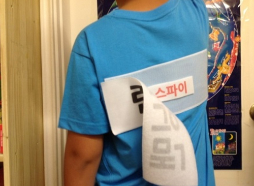 공개된 사진에는 SBS <런닝맨>에서 자주 볼 수 있는 탈부착 이름표가 등에 붙은 모습이 담겨 있다.